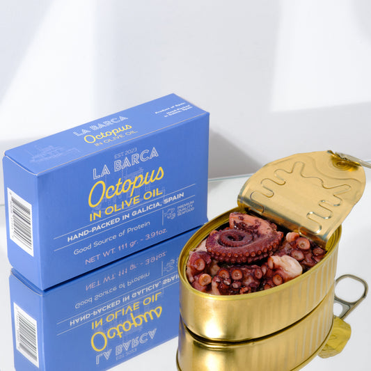 We have an assortment of seafood delicacies ranging from sardines and tuna to octopus and mussels. Each species is responsibly sourced and wild caught in the bountiful waters of the Atlantic Ocean, Pacific Ocean, and Mediterranean Sea, then preserved following traditional